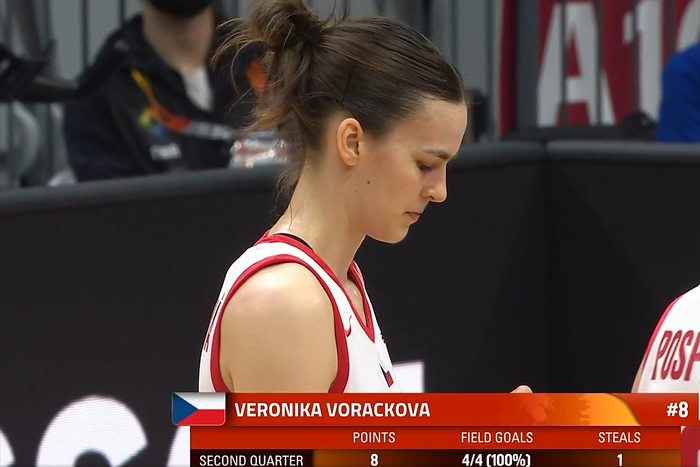 捷克队四人得分上双,切霍娃23分13篮板,表现优秀。