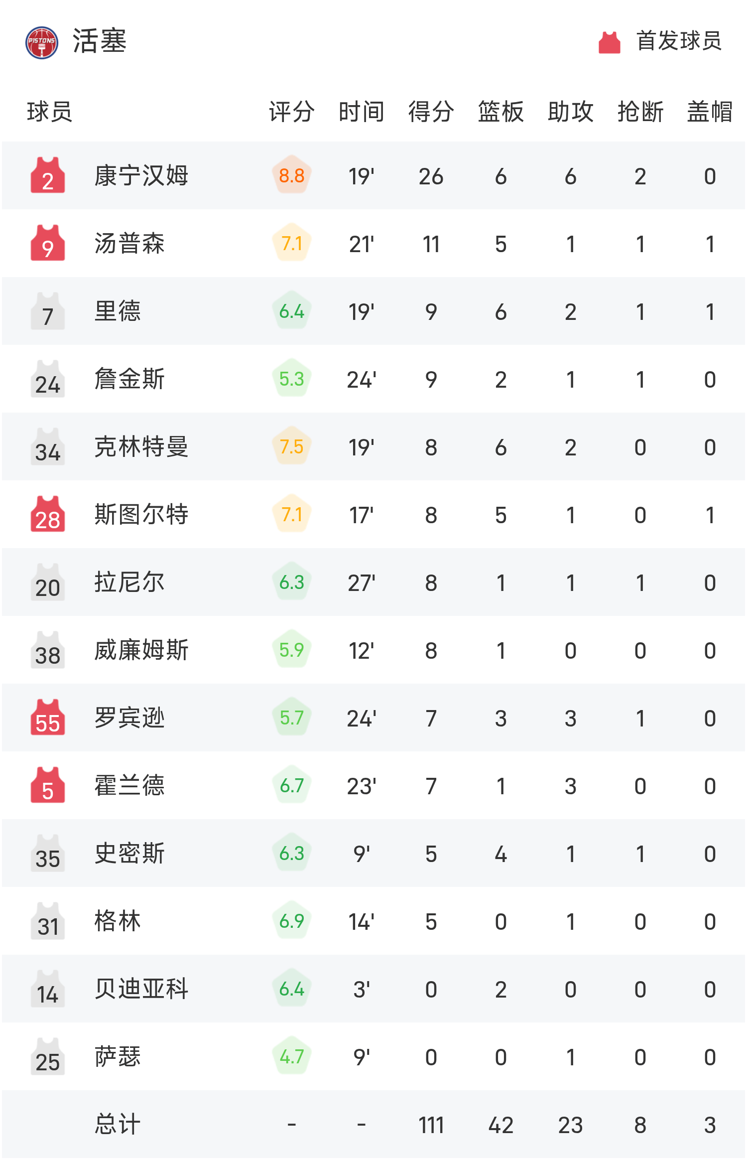 球员数据 查看更多