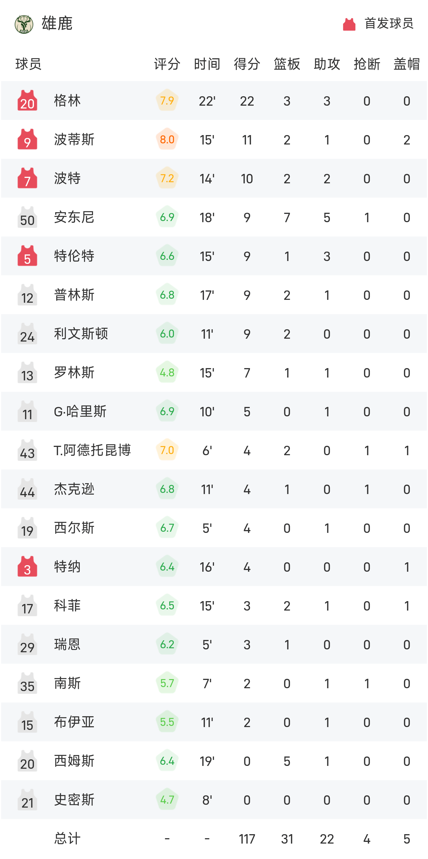 NBA季前赛战报:AJ·格林22分,雄鹿117-111活塞